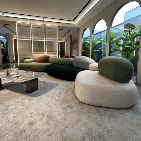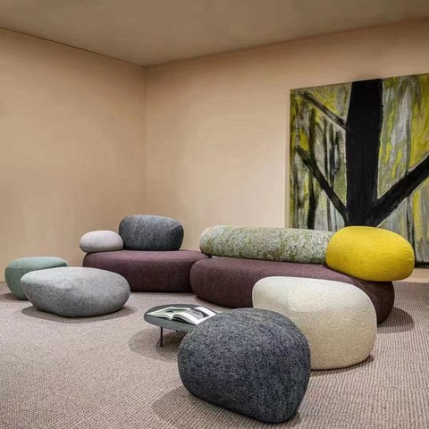 Muebles de sala de estar Sofá de jardín interior Sofá de guijarros elegante de ocio Sofá de tela suave de estilo moderno escandinavo